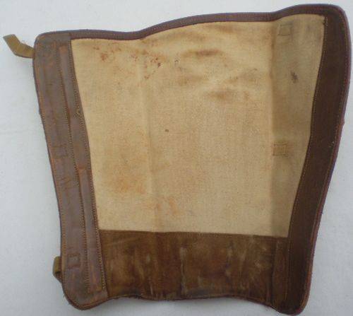 High British-style canvas gaiters. Lined inside with leather and suede. Length is 290mm. All straps and buckles intact.