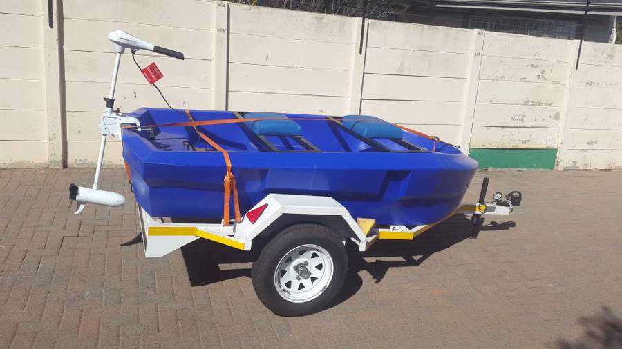 Blue in colour with 44LB Watersnake trolling motor. The trailer is specifically designed for the boat with all license paperwork is up to date. Boat/trailer and accessories is about 2 years old. Boat weight only 70kg. The boat also comes with a deep cycle battery and a Condor 345C df Colour screen fish finder. As extras a re- moveable floor board was cut and also two comfortable seats were added. Due to the size of the motor and type and the lenght of this little boat, no skippers license is required so you can use the boat straight away, having fun and start looking for that special fishing spot.