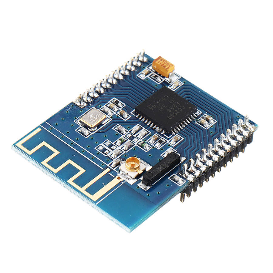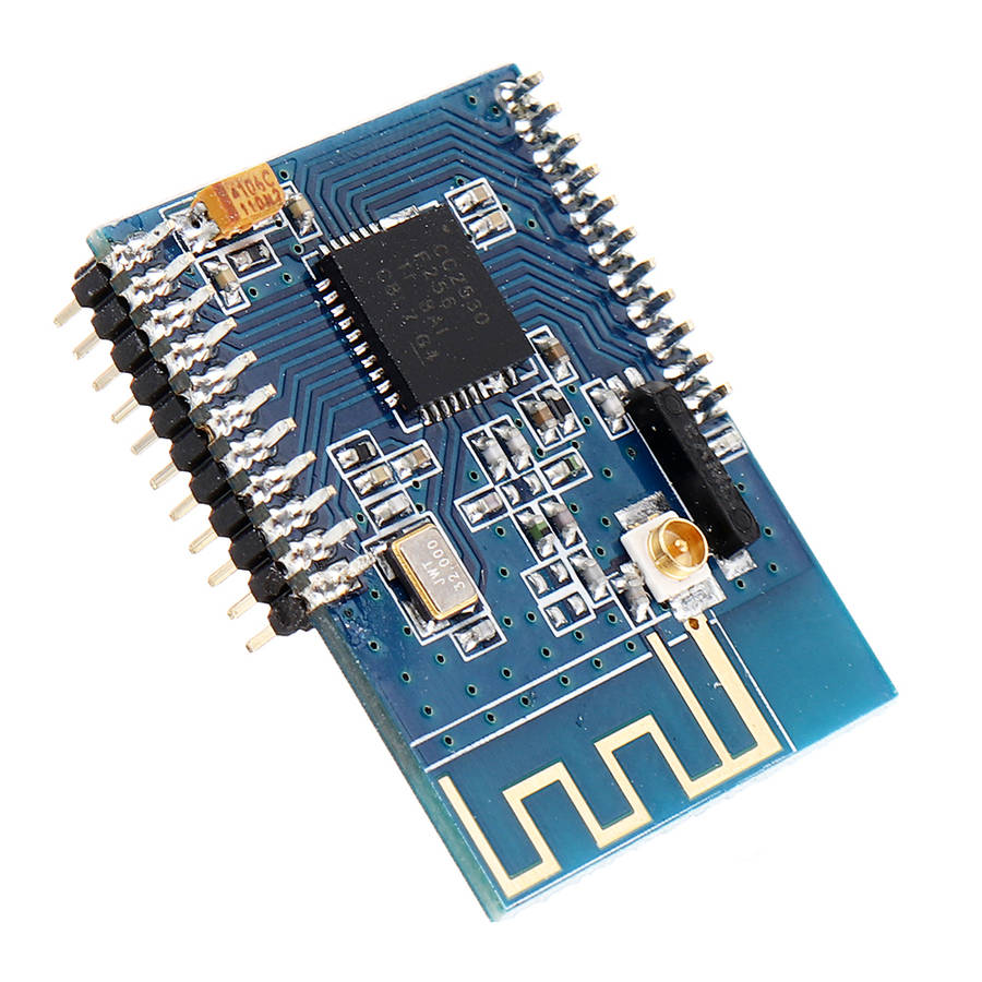 Features: 1. Transmit power 2.5mW (4dBm). 2. Receiver sensitivity-97dBm (BER = 10-2) . 3. The opening band, without application frequency, carrier frequency 2.4GHz. 4. High noise immunity and low error rate. 5. Air transfer rates of up to 250kbps. 6. Range of visibility, the reliable transmission distance up to 100 meters (PCB antenna), but also by IPEX interface to an external high gain antenna module that determines the distance from the antenna gain, the gain is doubled in size, distance doubled. 7. The range of visibility, the reliable transmission distance up to 100 meters (PCB antenna), but also by IPEX interface external high-gain antenna on the module that determines the distance from the antenna gain, the gain doubled in size, distance doubled. 8. Provides 16 channels, automatically selects the reliable channel of communication depending on the environment. 9. Power consumption: Receiving current a 27mA, emission current a 40mA. 10. Small size, light weight. 11. Using SoC, peripheral circuits, high reliability, and low failure rate. 12. Provides PCB board antenna, under normal circumstances can not matched antenna. Also provides an external antenna plug. 13. Adapted to 2.4GHz IEEE 802.15.4 and Zig Bee protocol applications, automatic network.