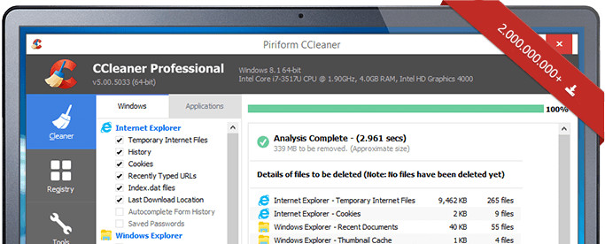 Is your computer running slow? As it gets older it collects unused files and settings which take up hard drive space making it slower and slower. CCleaner cleans up these files and makes it faster instantly.