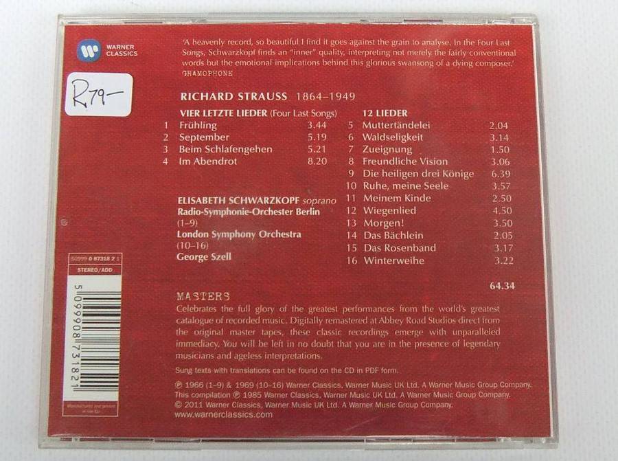 CD - R. Strauss - Elisabeth Schwarzkopf - George Szell CD - R. Strauss - Elisabeth Schwarzkopf - George Szell CD - R. Strauss - Elisabeth Schwarzkopf - George Szell