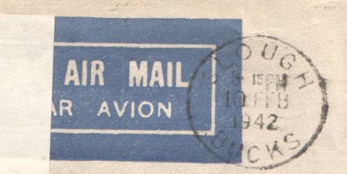 Censored WW2 mail from Bucks Slough England to Toronto Canada with 1 shilling 3 pence postage cancelled on 10 Feb 1942 - tag with airmail