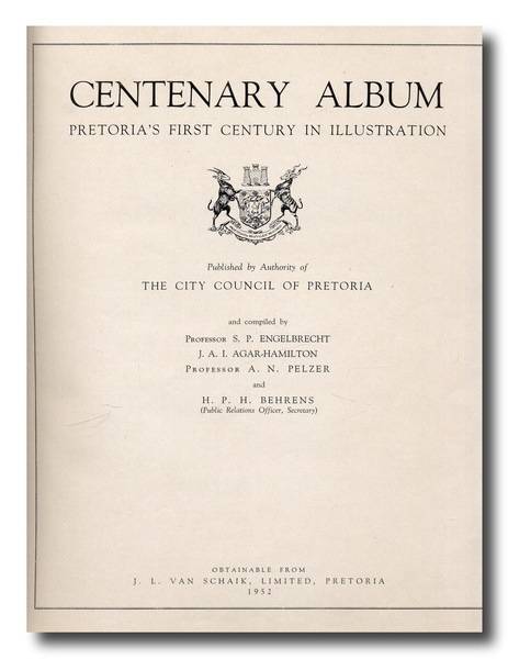 Centenary Album Pretoria's First Century in Illustration published by The City Council of PTA (Signature of Piet Skiet Rudolph in front of book). Larger than A4, Hard Cover, 120 pages. Cover a bit worn bit still nicely in one piece. Inside of book in good condition.