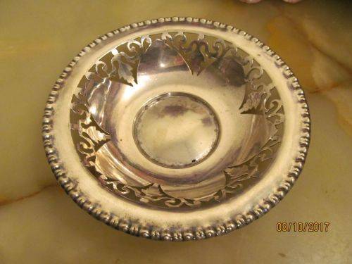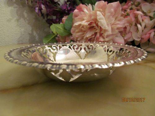 SILVER PLATED VINTAGE SWEETS / BON BON DISH WITH PIERCED METAL PATTERN ABOVE CENTER PETALS