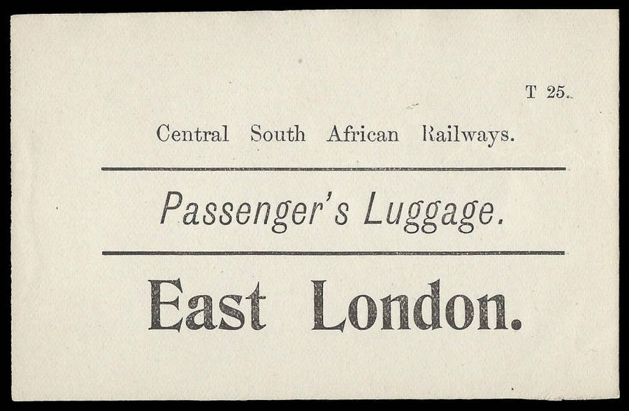 Railways: Pre-Union (Transvaal Colony and Orange River Colony). Central South African Railways (CSAR) Luggage Label – East London. Good condition.