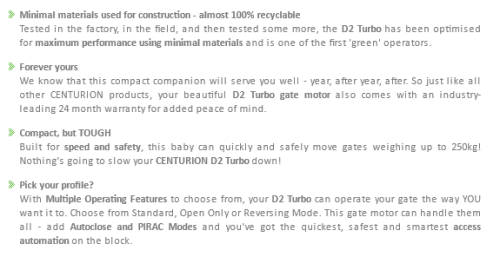 D2 TURBO - DOMESTIC SLIDING GATE MOTOR