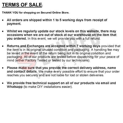 R35.00 Standard shipping using one of our trusted couriers applies to most areas in South Africa. Some areas may attract a R30.00 surcharge. This will be calculated at checkout if applicable. Check my rate