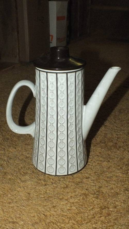 Ceramano - Vintage Ceramano White Coffee Pot Dark Brown Lid - West Germany