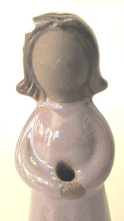 Between the clasped hands of this ceramic figurine is a hole that was apparently meant for flowers. There isn't a maker's mark or sticker, but the remains of sticker glue on the left side (see second photo below) suggests that the item is one of the figurines designed in Sweden by Elsi Bourelius for JIE Gantofta. These figurines were available in different colours and sizes. The height of this one is 125 mm. There are no chips or cracks