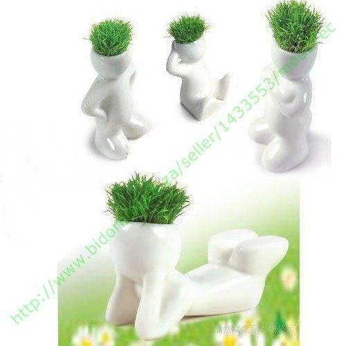 Ceramic Man Grass Hair Pot (Sitting man) (In Stock)