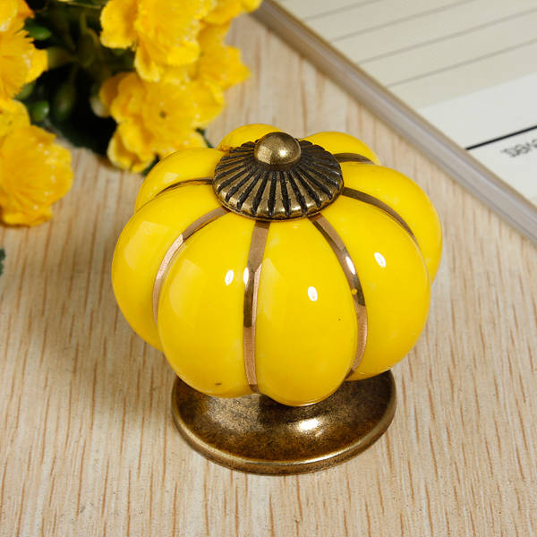 Description : Ceramic Pumpkins Door Drawer Cupboard Pull Handles Knobs This is a Ceramic Pumpkins Door Drawer Knobs, which is durable, useful, and also easy to install. Lovely pumpkins shape design, it is really a popular europe style knobs. Perfect for drawer , cabinet , cupboard , door etc. There are7 colorsavailable , please select the color you love. Notices : For each single port knob, we all provide one piece 22mm screw for easy installing :) Specification : Material : Ceramic and zinc alloy Color : Orange / Red / Yellow / Blue / Green / White / Black Size : (L x H) 4 x 4cm Package includes : 1 x Pumpkin knob pull handle Details Pictures :