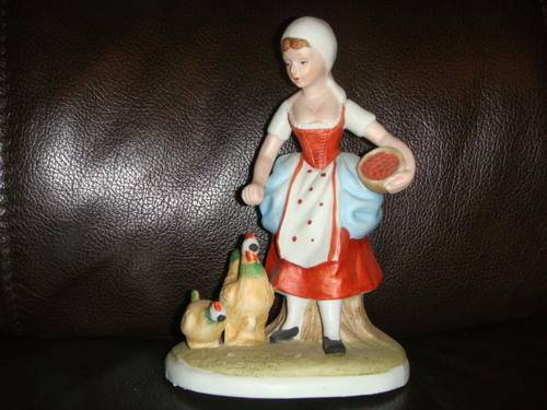 In perfect condition is this figure of a young woman feeding chickens. 16cm tall. Colors are pretty and alive. All finishing and detail are well done.