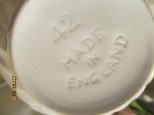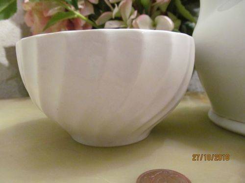 1)- A VINTAGE WHITE CERAMIC SUGAR BOWL THIS ITEM IS IMPRESSED UNDERNEATH - "42, MADE IN ENGLAND" IT IS 6cm HEIGHT.....5.2cm DIAMETER OF BASE..... 10.6cm DIAMETER OF RIM