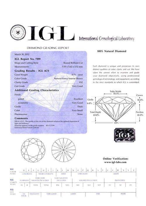 (Diascript appears on girdle: Certificate number 'G7199' inscribed by laser on girdle and can be verified