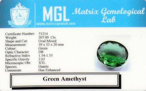 Certified 207 Ct Certified Oval Shape Hydro Green Amethyst Gemstone