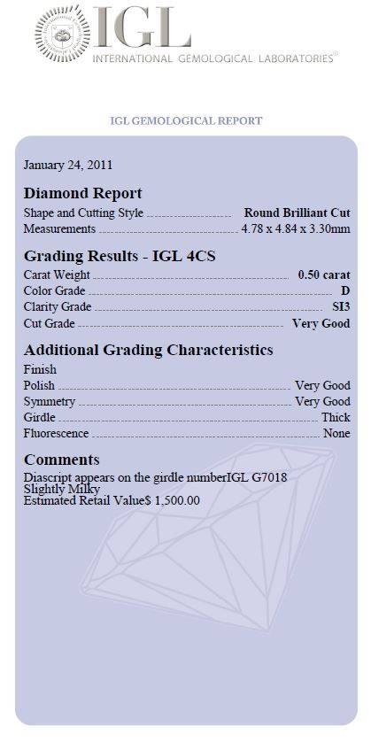 THE DIAMOND IS IGL CERTIFIED, AS FOLLOWS: