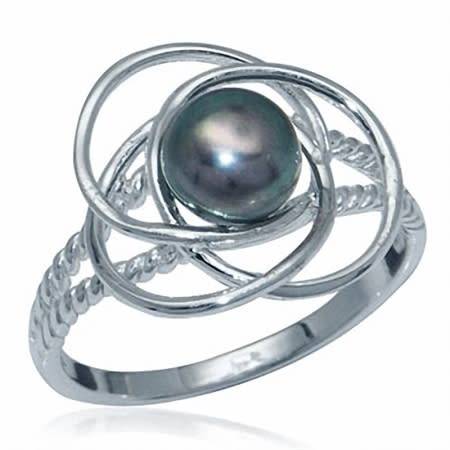 CERTIFIED R1099- Genuine Freshwater Pearl Black 925 Sterling Silver Ring.