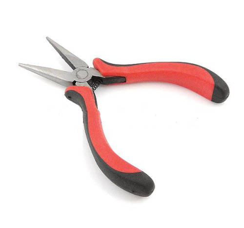 CHAIN NOSE PLIERS - BEADING TOOLS - SMOOTH - RED AND BLACK PVC - STEEL BAR HANDLES - 98x125x18mm
