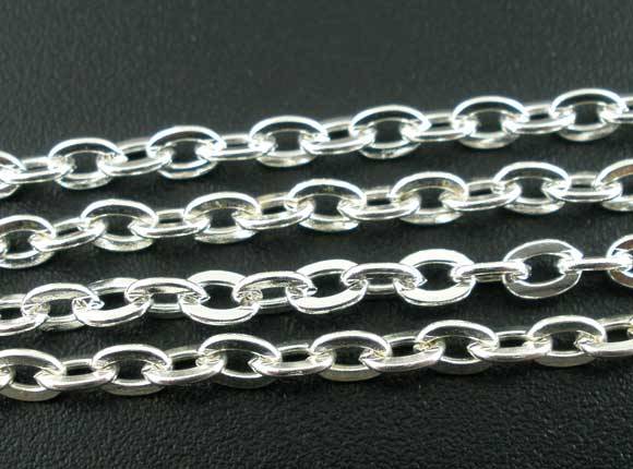 CHAIN - SILVER PLATED - FLAT CABLE - 3x4mm - SOLD PER PACK OF 1 METER