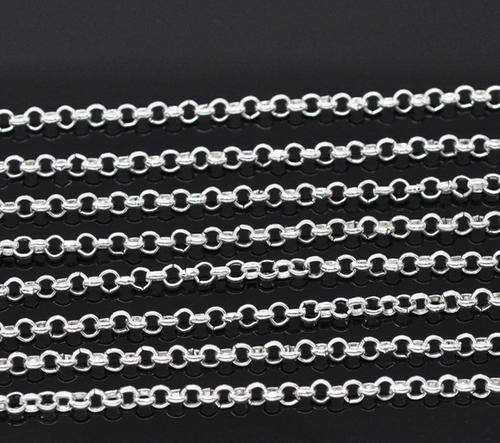CHAIN - SILVER TONE - LINK OPENED - CABLE - 3 x 2mm - SOLD PER PACK OF 1 METER