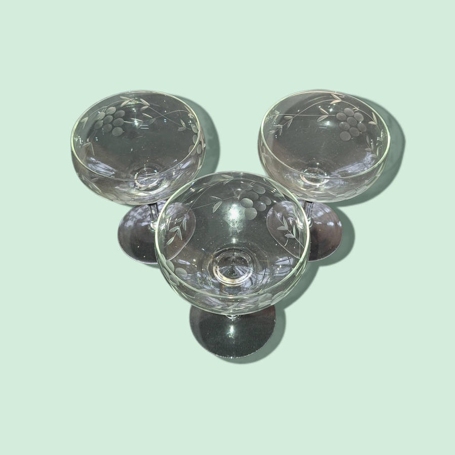 | 🏷 Champagne glasses with etched grapes motif |