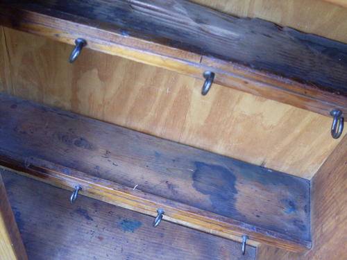 It is on the underside of the shelf. Also noted on the top shelf inner