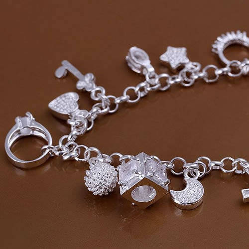 CHARM BRACELET WITH 13 CHARMS - 925 SILVER FILLED