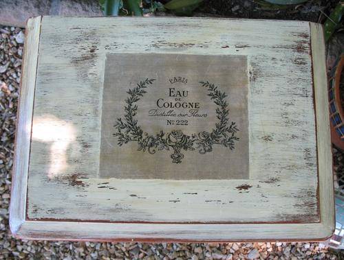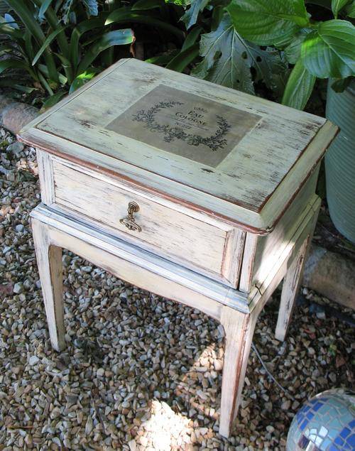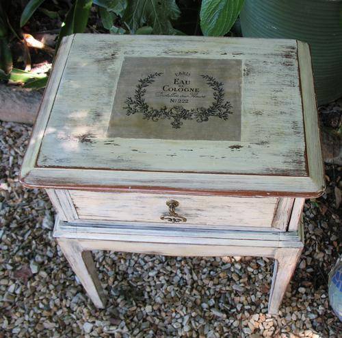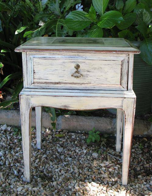 Charming vintage dark wood painted bedside or hallway table with French label
