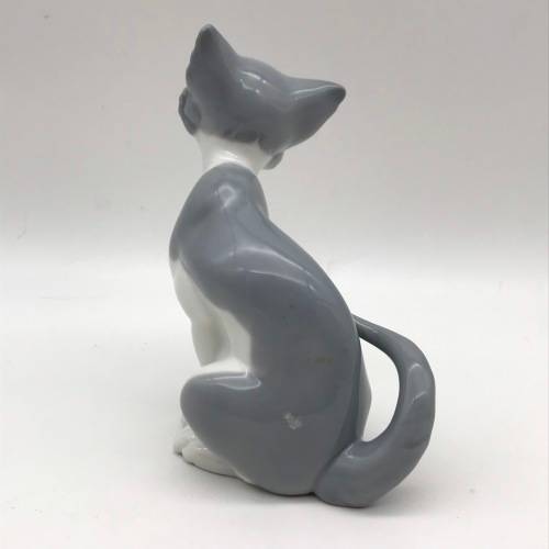 This adorable, glossy white and grey 'Lladro' porcelain figurine of a seated kitten is in excellent condition. She stands 13,5cm high, with a base diameter of 8cm x 5,3cm.