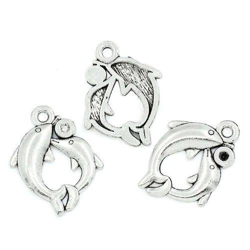 CHARMS - ANTIQUE SILVER - DOLPHINS - PENDANTS - 25.5x20mm