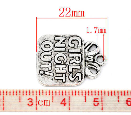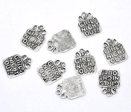 CHARMS - ANTIQUE SILVER - "GIRLS NIGHT OUT!" - SQUARE SHAPED