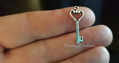CHARMS - ANTIQUE SILVER - HEART KEY - 11x26mm