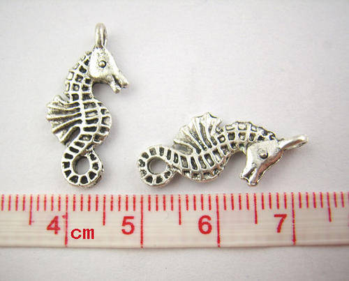 CHARMS - ANTIQUE SILVER - SEAHORSE - DOUBLE SIDED - 24x10mm