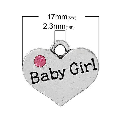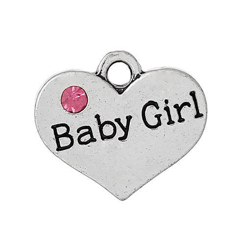 CHARMS - BABY GIRL - ANTIQUE SILVER - PINK RHINESTONE