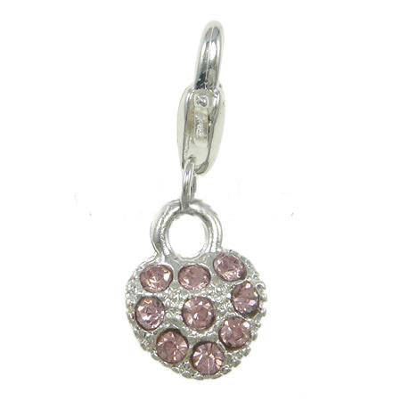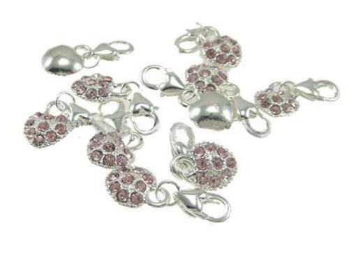 CHARMS - CLIP ON - RHINESTONES - HEART - PINK