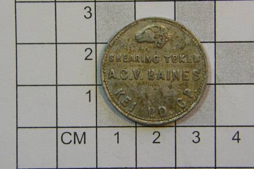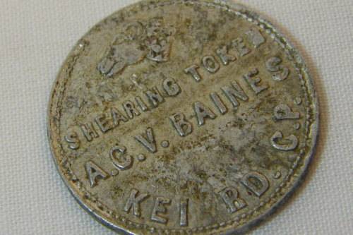 Chas, Bond & Co. General Merchants Kei Road shearing token - A.C.V Baines - RARE
