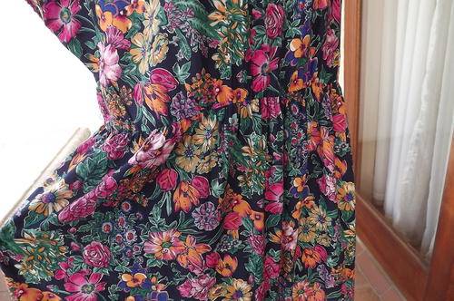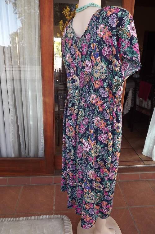 Cheerful floral dress by Woolworths in size 46/22.Elasticated middle.100%Viscose fabric.Navy background with pink & blue flowers.Good condition.Short cut on sleeves.