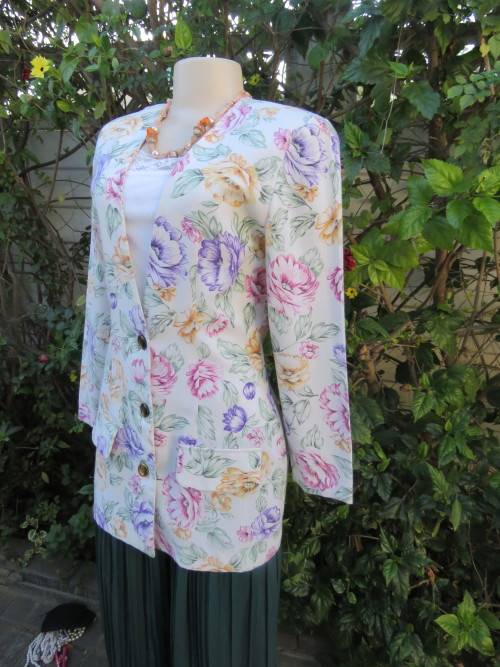 Cheerful floral long sleeve jacket.Size 34/10.By SOPHISTICATE.Used but in good condition.