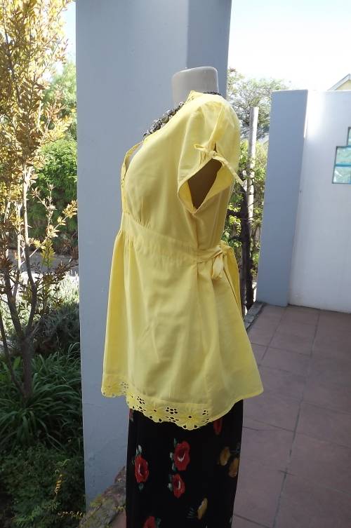 Cheerfull yellow summer maternity top with capped sleeves.Size 36/12 by "DU DATE".Empire style