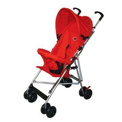 Lightweight stroller with a sun canopy and front bar. Folds compactly when not in use.