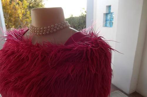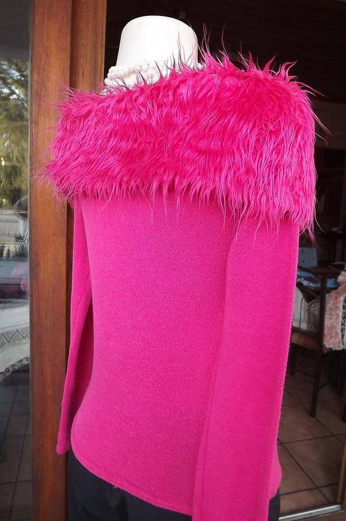 Cherise pink stretch long sleeve top with Faux fur collar size 34 from Asia.Collar low on shoulder