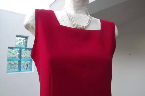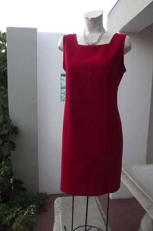 Cherry Red Sleek Short Dress in size 12/36 - square neckline - short slit at back - good condition