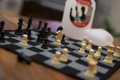 A stylish natural wood chess set and printed fabric playing board designed to fit inside our handy pocket-sized pebble box... where will you play?