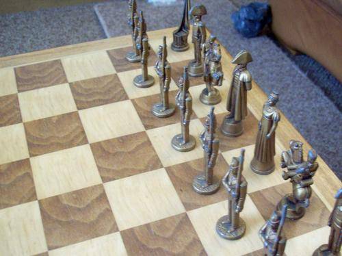 Chess set made of lead Napoleon army. The pieces are not 100% condition, and weigh 2kgs, the board is 40cm square