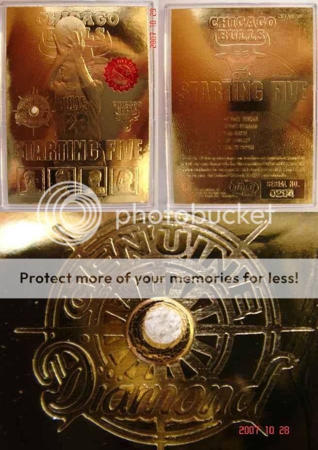 CHICAGO BULLS STARTING FIVE GENUINE DIAMOND 23KT GOLD CARD
