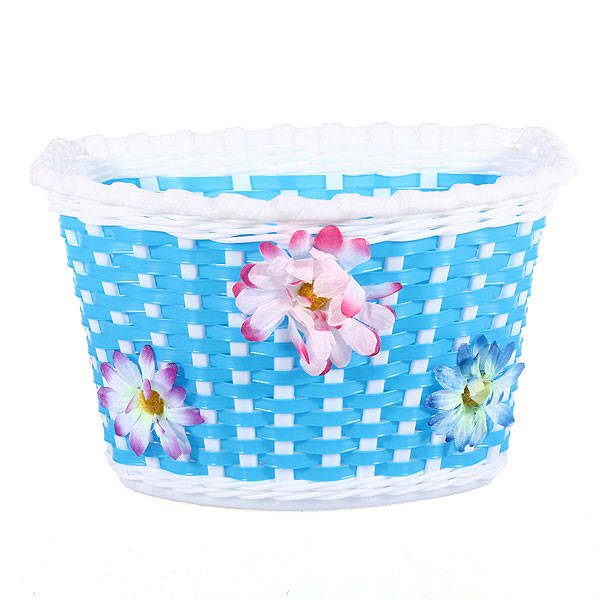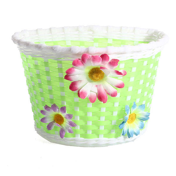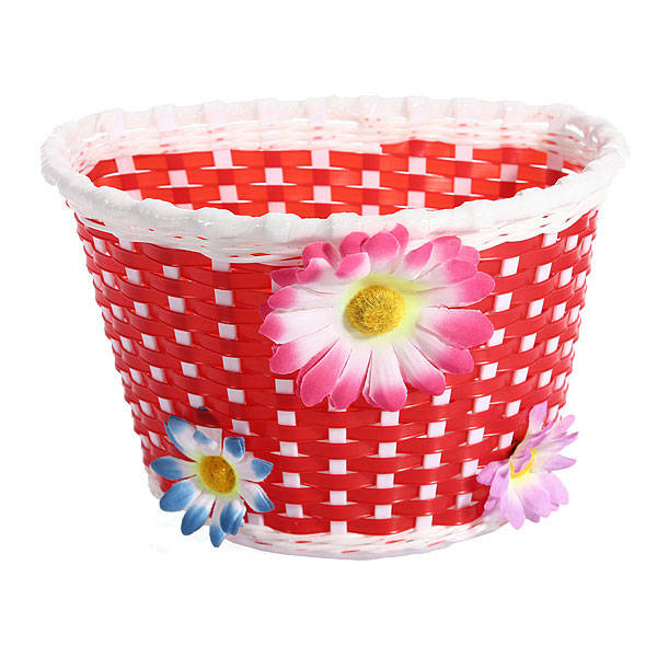 Child Bicycle Medium Basket Colorful Woven Plastic Flower For Bike