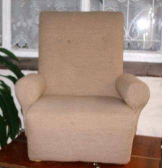 Child Lounge Chair, its 670mm height seat is tapperred 330mm-400mm the back has burn mark and small tear,as per pic , the frame is wood so no problem to re/upholster