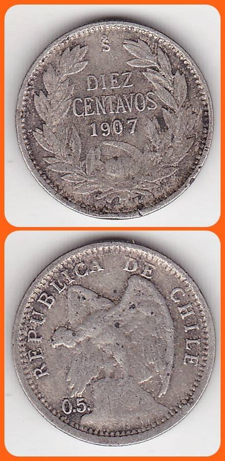 CHILE - 1907 - 10 CENTAVOS - KM# 156.2 - F COIN - 2.0g 0.50 SILVER
