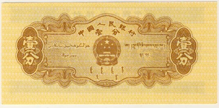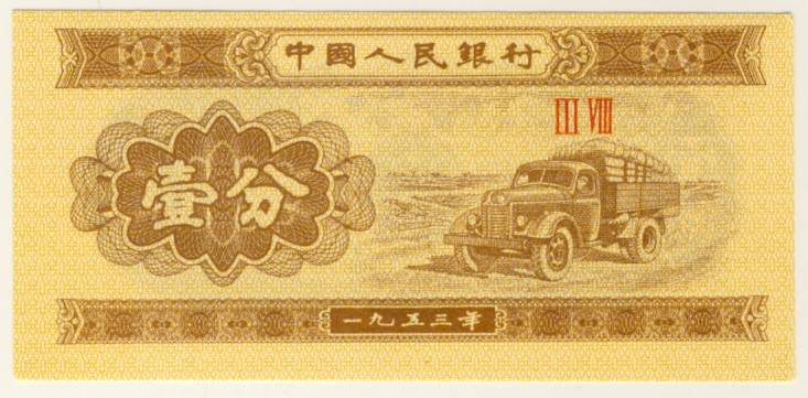 China - 1 Fen , 1953 , Crisp UNC., p860c