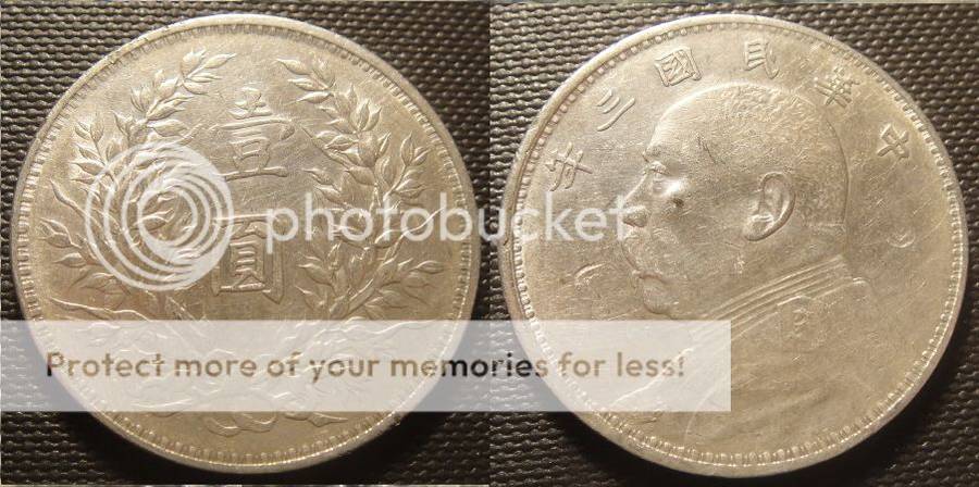 On the obverse of this coin shows Yuan Shih-Kai's side-view portrait. Above it there are 6 Chinese characters indicating the 3rd year of the Republic of China (1914 AD). On the reverse, there are 2 Chinese characters, indicating one dollar within good harvest designs